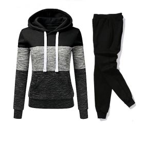 Women Tracksuit 2 Pieces Set Winter Hoodies+Pants Set Patchwork Pullover Sweatshirt Female Sport Suit Outfits for Woman Clothing - Black - XL
