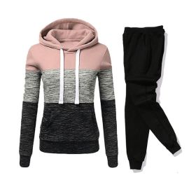 Women Tracksuit 2 Pieces Set Winter Hoodies+Pants Set Patchwork Pullover Sweatshirt Female Sport Suit Outfits for Woman Clothing - Pink - S